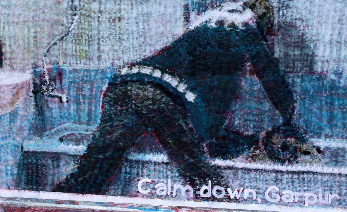 Comedy and tragedy unfold in this scene of an anxious and dirty sheep being washed by his master. There is a mixture of levity and seriousness in this cleansing ritual as the ram is relieved of the burden of his desires. There is an uneasy coexistence of entrapment and freedom. The subtitles evoke the sound of the words and the words, echoing and amplified as they would be in the confined space of the bathroom, evokes the sense of the divine.