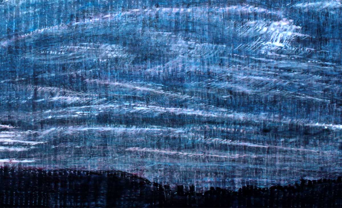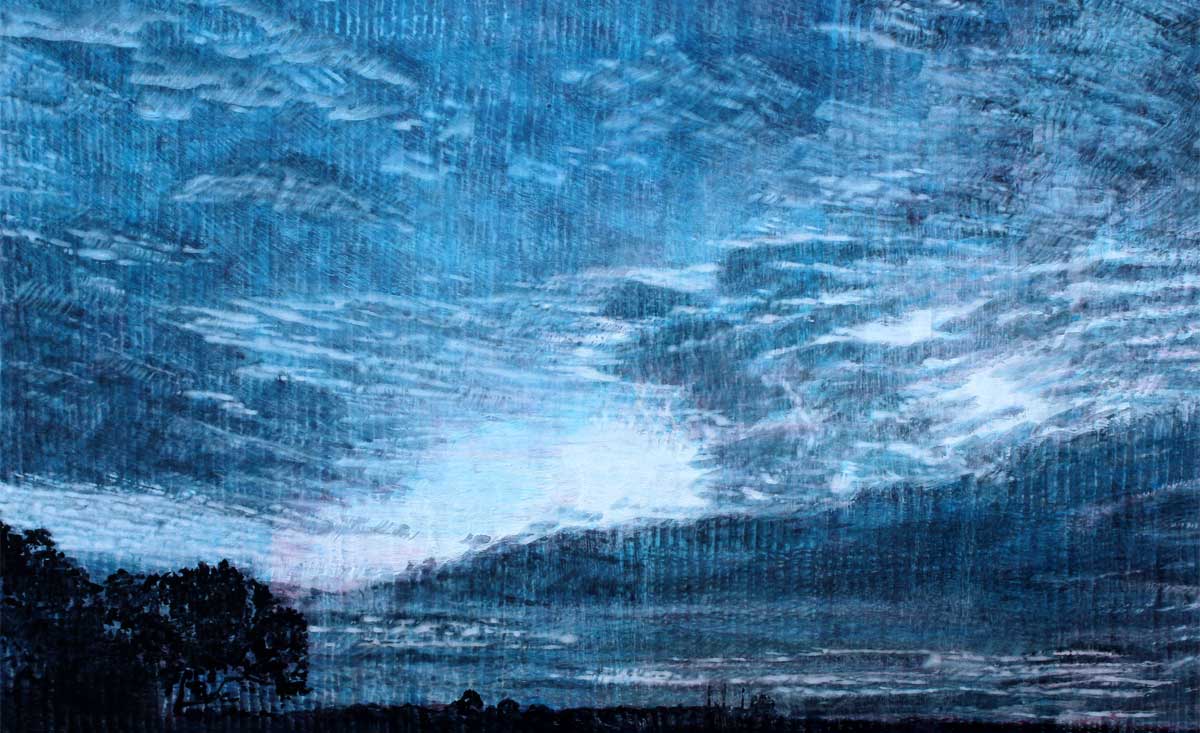 On an open parcel of land, near the president’s house in Pretoria, is an experimental farm, from which this image was taken. One can see three towers of Pretoria’s central business district sticking out behind the hill. The sun is low and twilight is setting in. A vertical pin striping pattern lays out and structures the image of this location. It is an ambiguous pattern that could mean many things, but it seems to be exerting a great influence as it penetrates the landscape, attacking the ground, as it were, with millions of razor thin almost invisible pins. It is a seemingly complex pervasive oppressive influence that is difficult to detect and to describe.