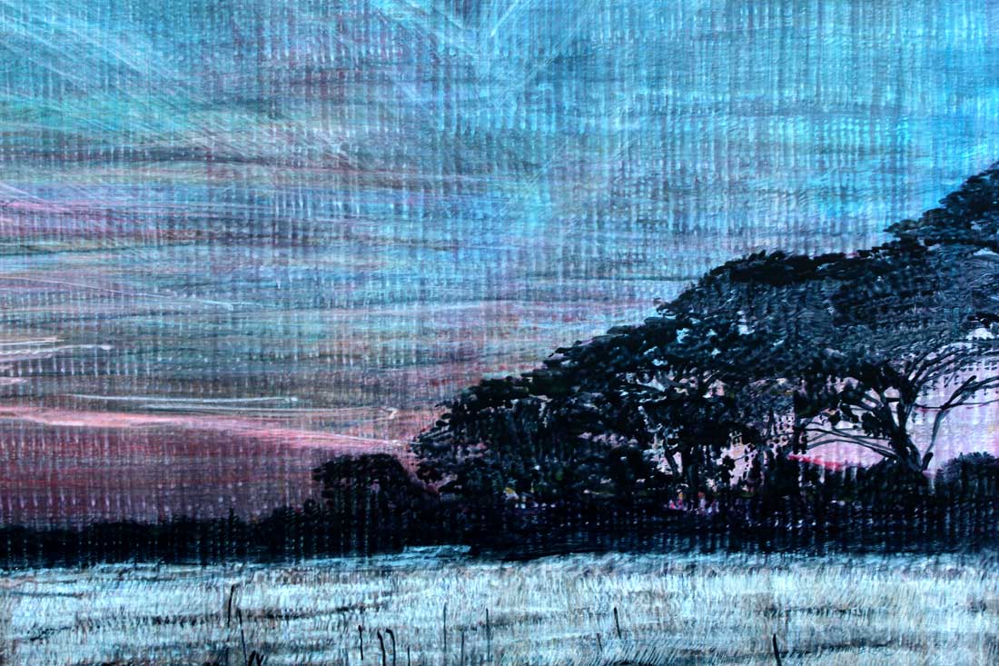 A sweet sadness descends on this landscape, as the sun sets and the day, finally, comes to an end. This day will regrettably, or perhaps mercifully, slip away into oblivion. The landscape’s beauty is still slightly touched with a lingering weariness and a momentary tranquil harmony pervades the location as the patterns of the sky and the earth seem to align a bit more. In one of his poems, TS Eliot refers to a 'still point', which is a strange moment that is extended in and out of time, and where the paradoxes of life and reality can be reconciled.