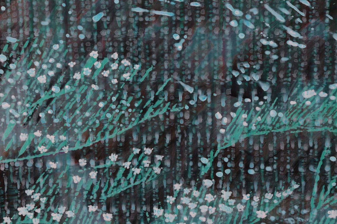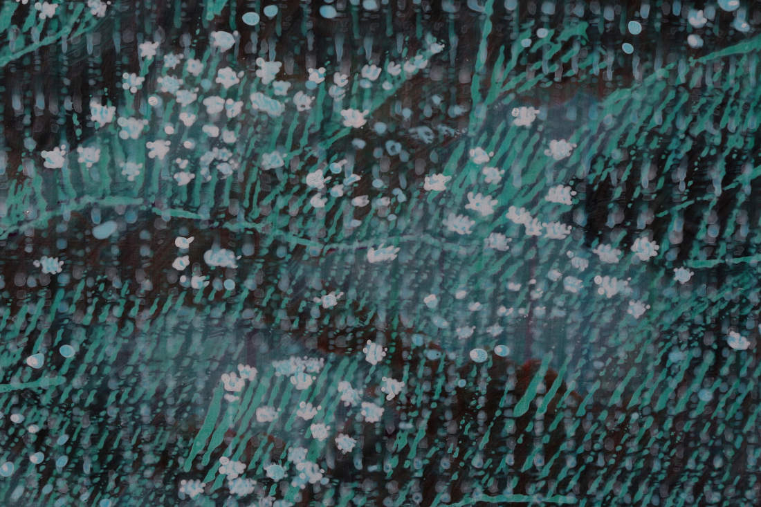 In the small white flowers I detect some rudeness in some of the dots that show dicks and middle fingers, grinning, giggling, grimacing, their naughtiness, their fun, juvenile, immature, unfiltered nature. The humanness of these dots, the sublime humanness, so distinguishable from machine dots, a different kind of pattern that humans make, a recognisable difference that can be identified when looked at.