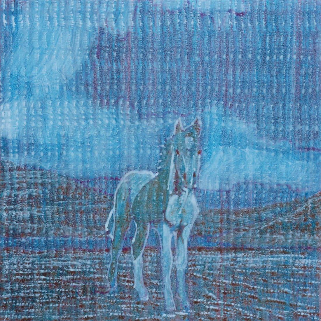 [12 June 2023] This painted representation of a pony, doing what representations do in the universe of there artwork. What is this one doing, is it incomplete? Somewhere high up in the mountains, untainted by humans, clouds above and behind, being looked on by me, the viewer, a stadium of witnesses and from above.