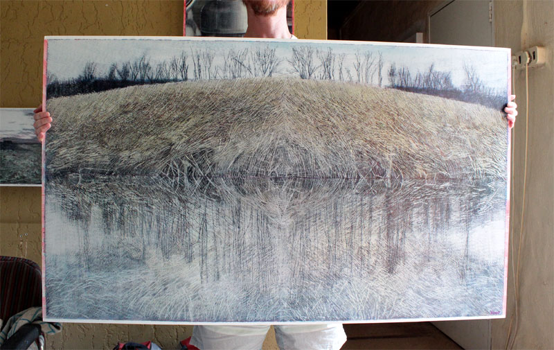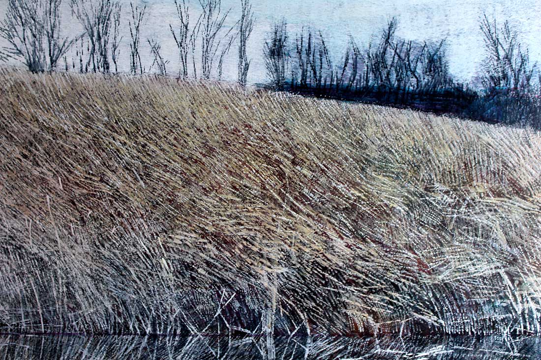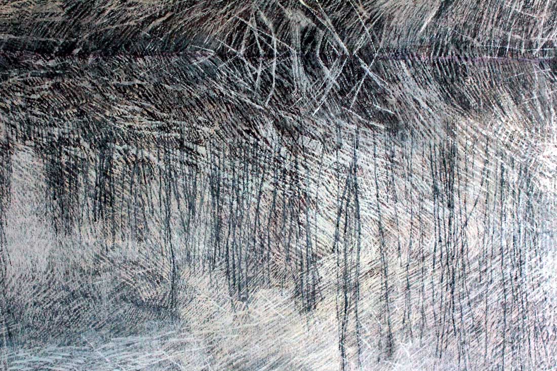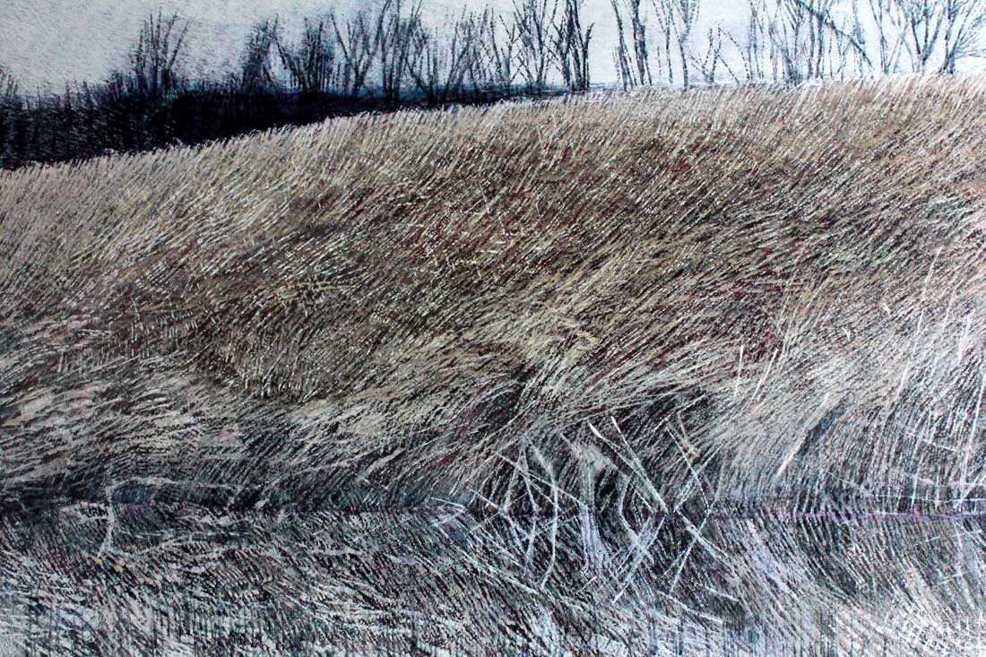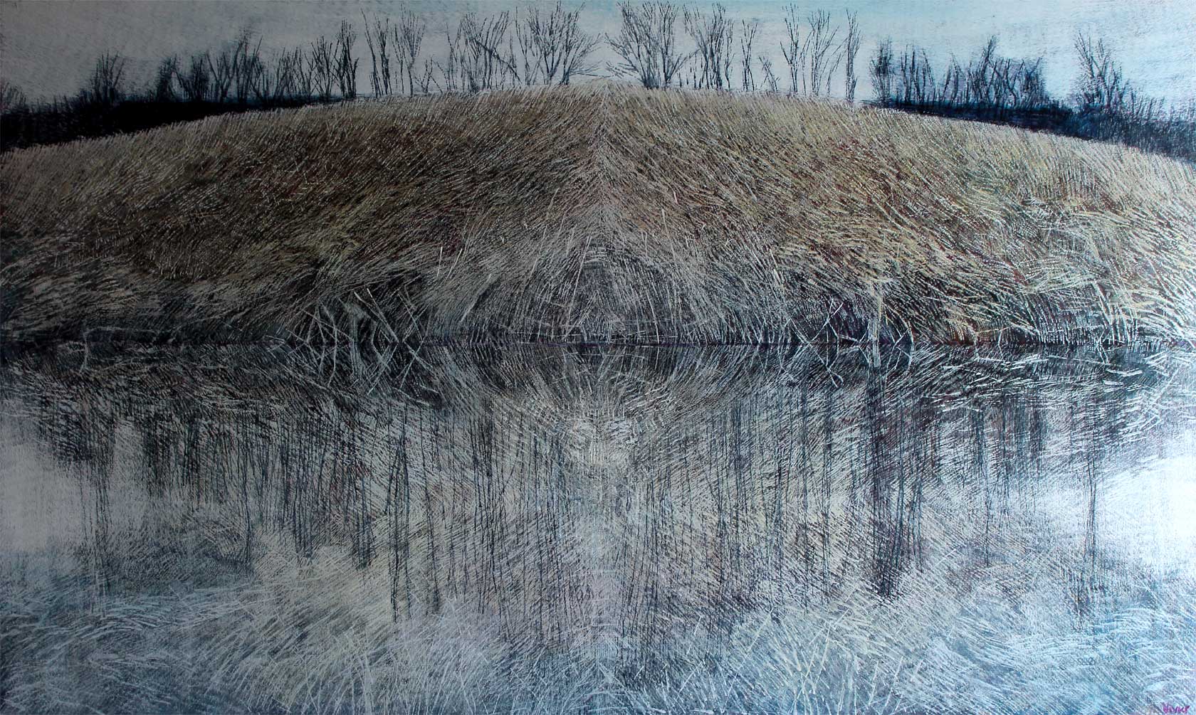 I think this painting has immediate appeal, it is warm, fuzzy and comforting in colour and its grassy/furry texture. But also, it has a kind of artificial pixellated ‘computer game’ quality to its surface, and that is when it starts to draw me in, into its web, into its complexity.